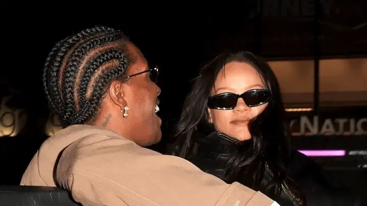 O casal, que recentemente teve uma filha chamada Rocki Irish Mayers, estava a bordo de um Rolls Royce preto conversível, com A$AP trajando um terno marrom e gravata listrada, enquanto Rihanna usava uma jaqueta de moto preta.