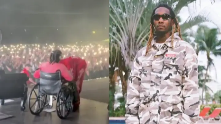 Offset on stage with a sympathy wheelchair after being shot at a Florida casino few days ago pic.twitter.com/OUG3uM3UgU