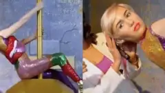 Miley Cyrus ganha estátua de cera inspirada em "Wrecking Ball" no Madame Tussauds em Dubai